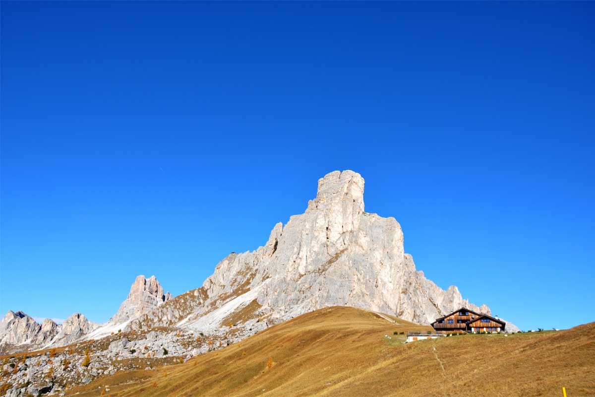 Prav tako blizu Cortine d’Ampezzo. S hribi in gorami okoli ter s kočami, kjer se da jesti. Kotički za fotografiranje na vsakem koraku ali metru. Na tem prelazu sem bila pred leti na uro sončnega zahoda in lahko potrdim, da je takrat še lepši.