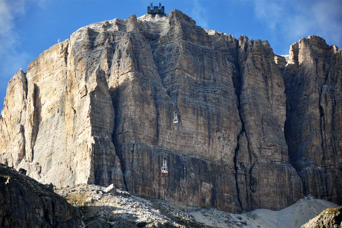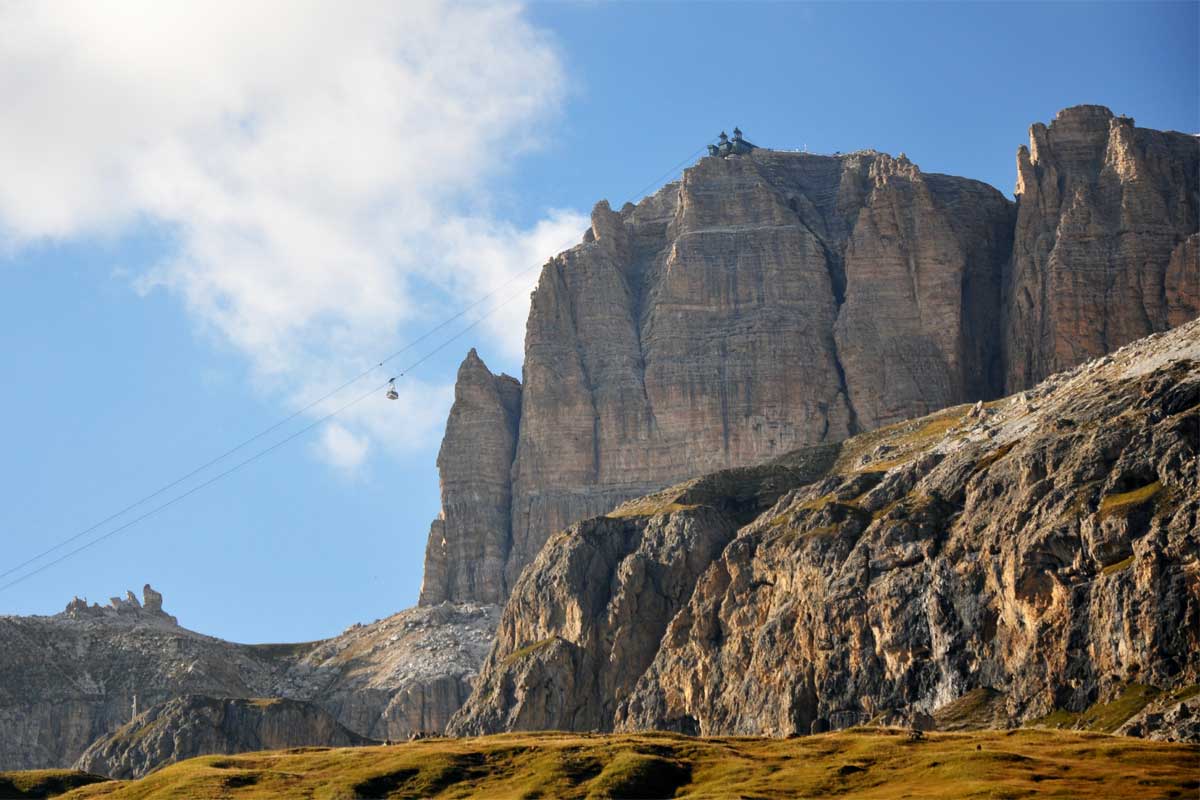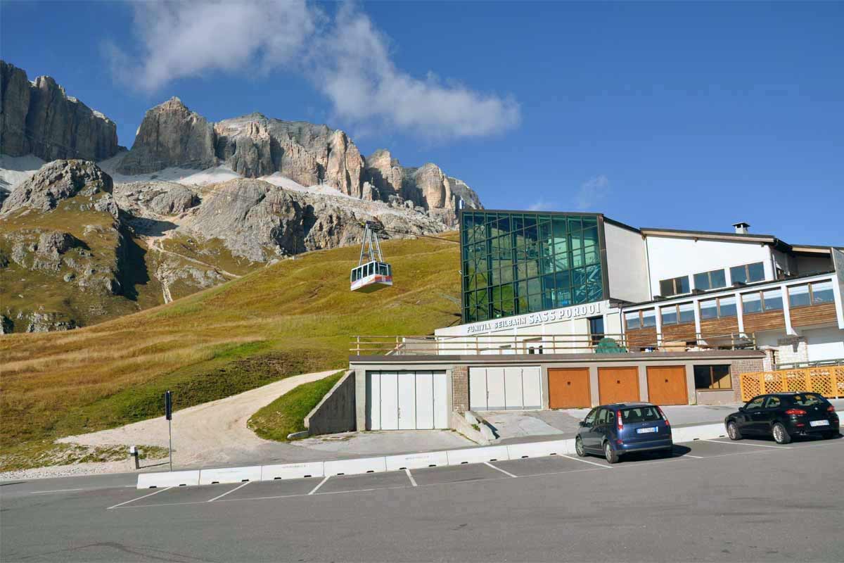 Passo di Pordoi je po mojih izkušnjah eden večjih in mogočnejših prelazov (tak je na primer tudi Stelvio), s čimer izgubi tudi malo svoje čarobnosti. Če ste tu, si privoščite podvig z žičnico na bližnjo goro. Zgoraj je, če ni snega, kot na nekem odaljenem planetu. Same skale, kamenje in seveda gostilna.