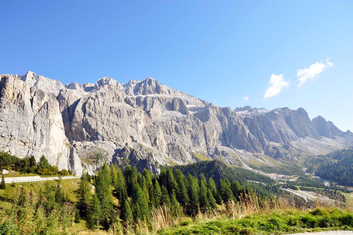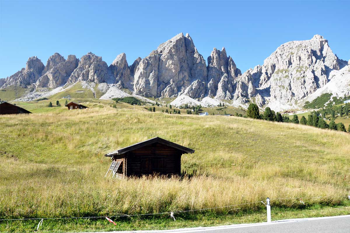Passo Sella ali raj za plezalce. Meni deluje kot Kekčeva dežela, travniki, za njimi pa gore. Potem pa še ura vožnje do Bolzana, kjer lahko nočite.