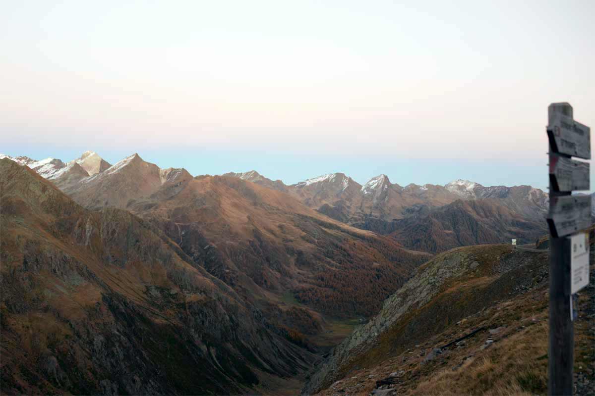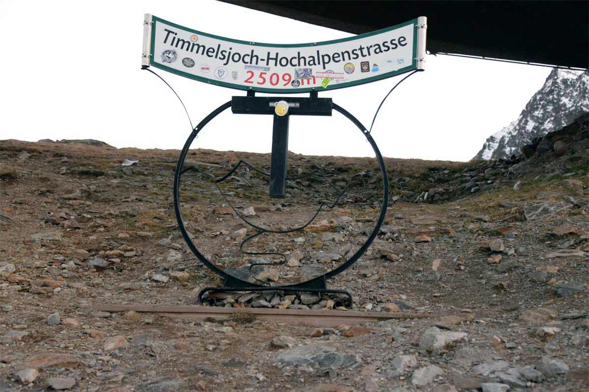 Timmelsjoch se nahaja na meji z Avstrijo, prvi bolj znan kraj v bližini pa je Solden. V italijanščini se ta prelaz imenuje Passo del Rombo in za spremembo odpira tudi poglede na gozdove. Ti so v barvah jeseni in ob zahajajočem soncu izjemni. Na vrhu vas pričaka ogromna skulptura, nekakšnega daljnogleda oz. teleskopa. Fotogenično, ni kaj. Potem pa predor in na drugi strani Avstrija. Ta prelaz sem videla žal samo v mraku in je že nazaj na spisku za naslednji izlet v Dolomite.