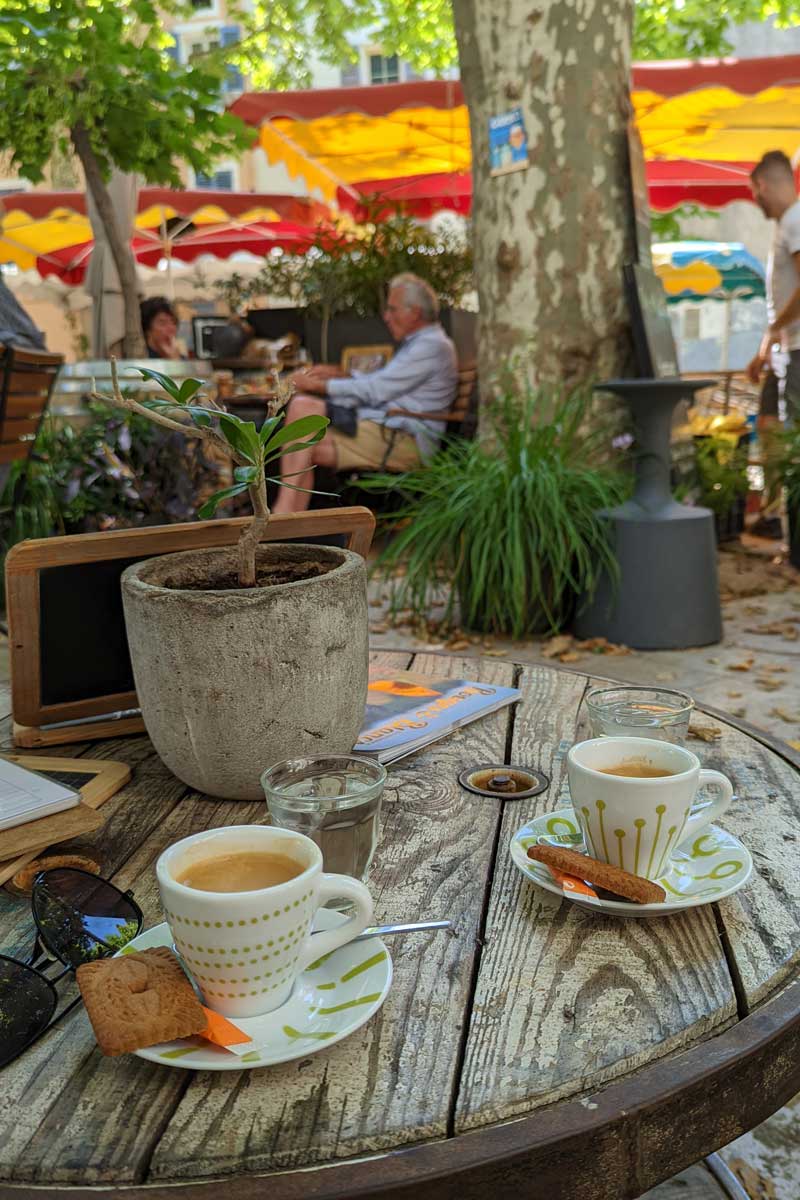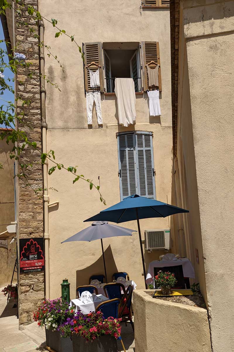 Zapeljala sva se do vasi Mougins, ki je ena sama galerija. Za večino vrat se skriva galerija. Toliko umetnikov na kupu še nisem videla.  Ker je čas dopuščal, sva zavila še v sosednjo vas Vallbone, kjer sva si želela privoščiti popoldanski prigrizek. A gostilne in kavarne so v Franciji v popoldanskem času zaprte, če ne gre za večje turistično mesto. Odprti so le redki bari.