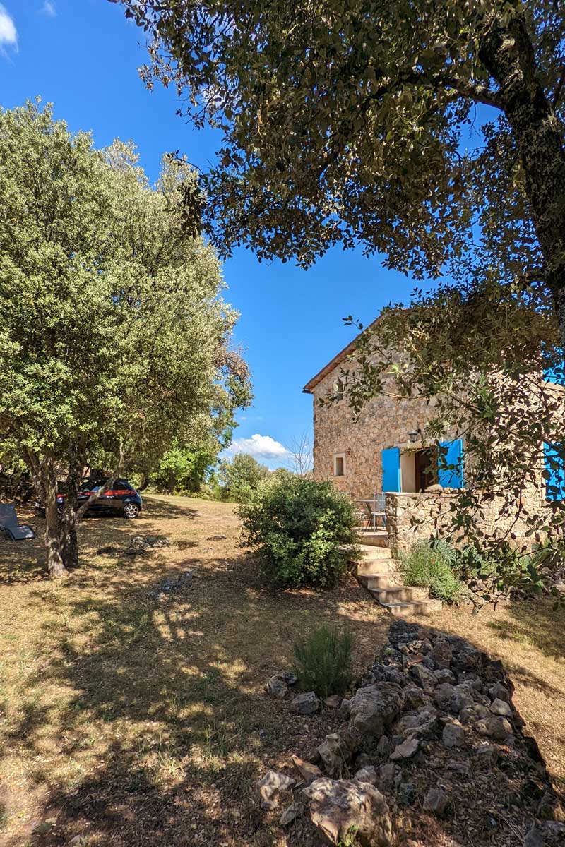 Provansa postreže tudi z višjim hribovjem in kot omenjeno, z najlepšim kanjonom v Evropi. Midva ga nisva raziskala, sva pa nekaj dni počivala sredi gozda, v stari kamniti hiši, pod hrasti plutovci. V tem delu Provanse je ozračje hladnejše in tudi bolj vetrovno. No, po celotni provansi je bolj ali  manj ves čas pihljal veter, tako da trideset in nekaj stopinj ni bilo tako nevzdržnih.