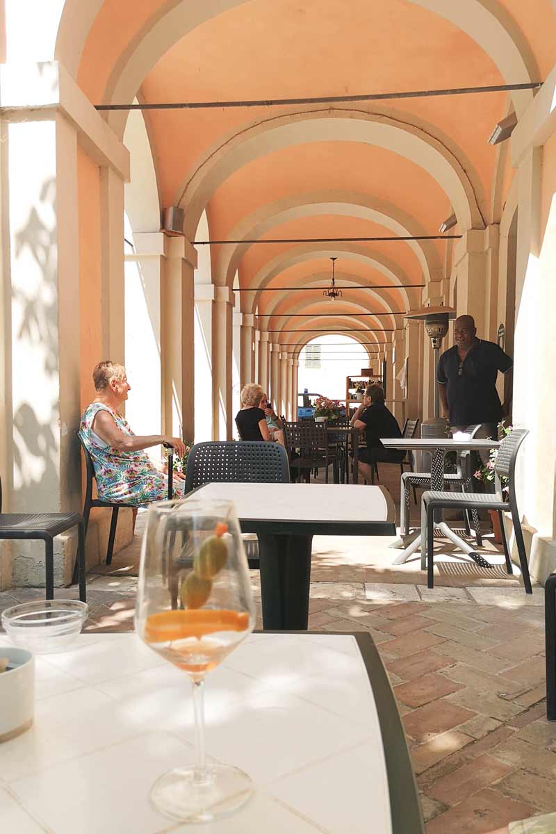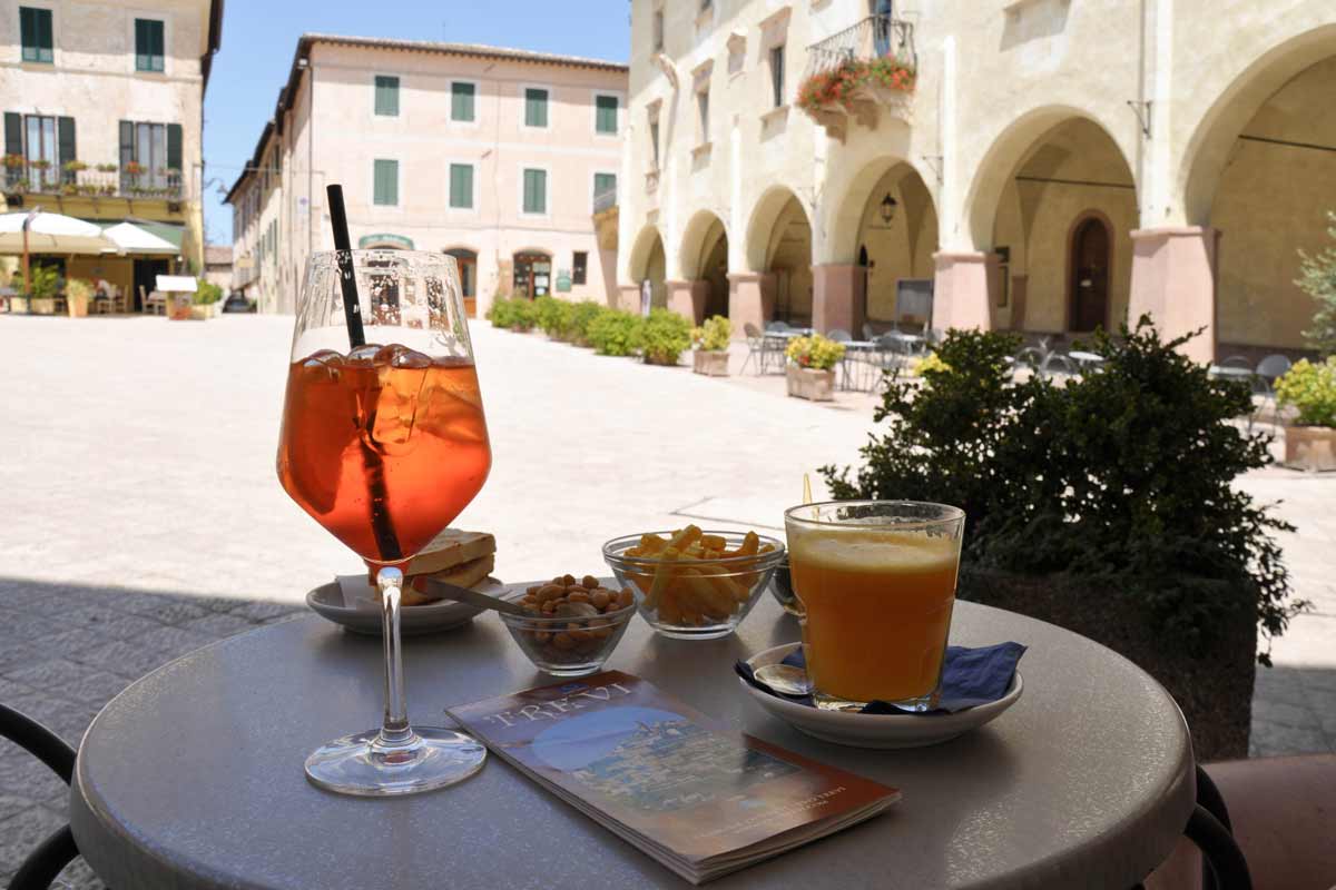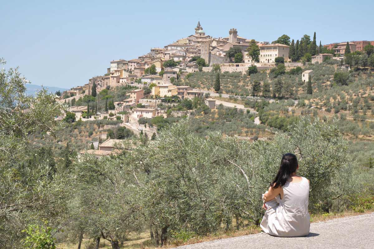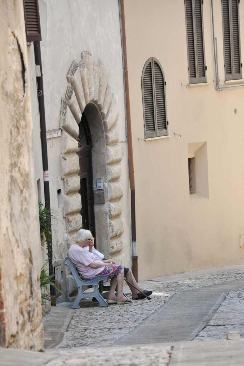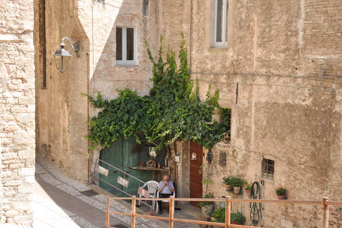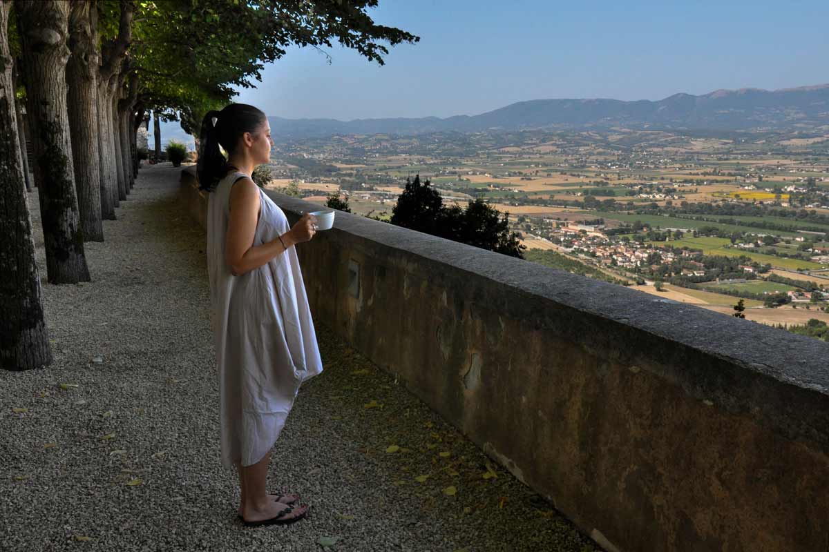 Midva sva si privoščila brezdelje. Soba naju je čakala pod grajskim obzidjem, v starem samostanu pod gradom Castello di Campello Alto z razgledom na celotno Umbrijsko dolino. Turistov ni bilo veliko in temu primerna je bila tudi ponudba. Ker tu ni mest, kjer bi mrgolelo ljudi, so med dopoldnevom in poznim popoldnevom skoraj vse trgovine in čisto vse gostilne zaprte. Kak vaški bar je seveda odprt. Drugih mondenih barov nisva našla. Pa je bilo tako najbolje. Najbolj pristno. V vsakem vaškem baru dobiš dobro kavo, dober aperol spritz in prigrizke. Dodana vrednost so domačini.