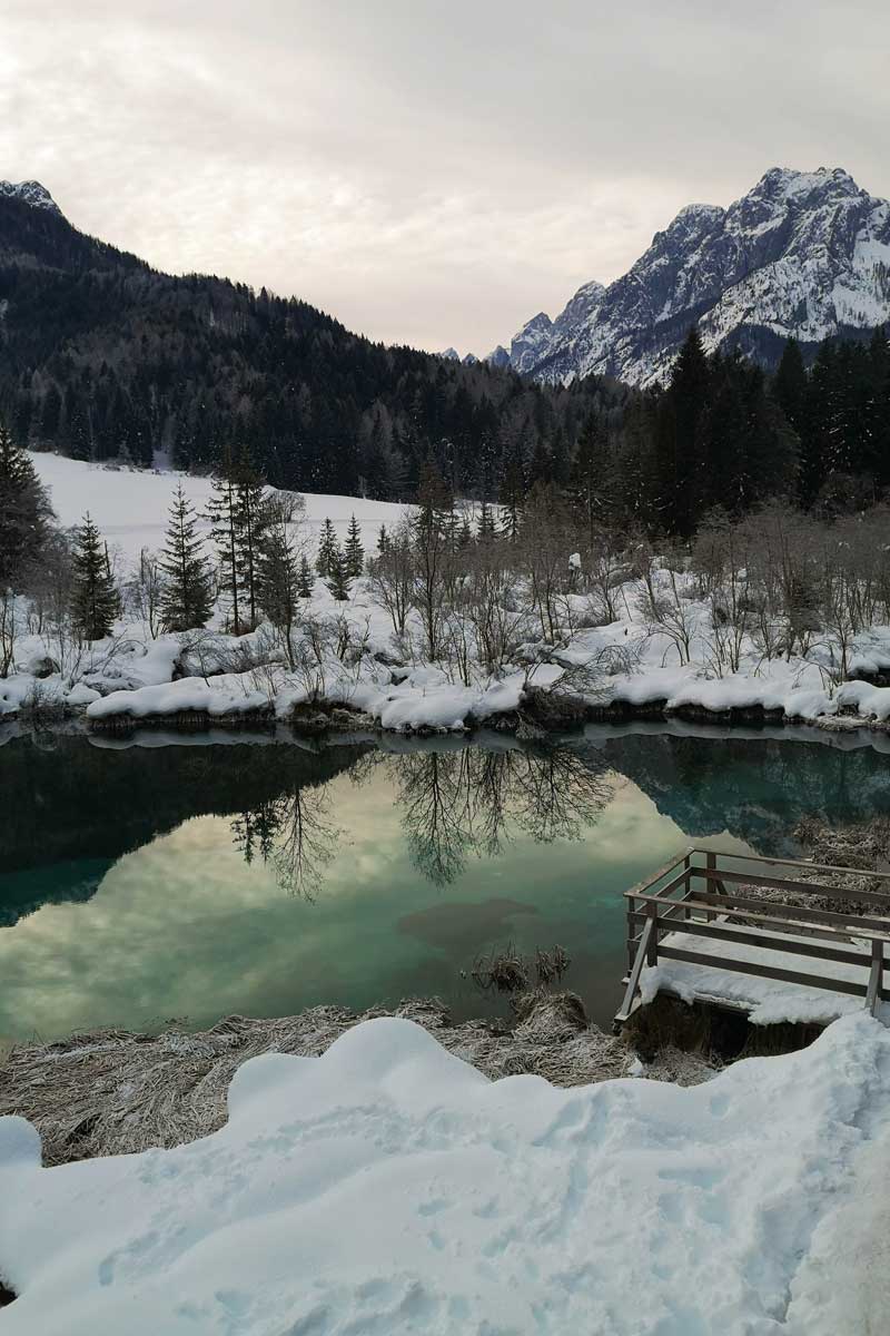 Približno uro hoda je med Kranjsko Goro in Zelenci. Je pa pred naravnim rezervatom tudi parkirišče. Do jezerca je le nekaj minut. Pot je lepo urejena tudi pozi. Sprehod skozi gozd ni naporen. Ob jezeru smaragdno zelene barve, ki je talni izvir Save Dolinke, je postavljen tudi razgledni stolp. Neverjetne barve se prelivajo ob pogledu na jezero, kjer je bil včasih 600 metrov debel ledenik. Običajno se tu tare turistov, zdaj pa ni bilo skoraj nikogar. A tudi zasneženi Zelenci so vredni ogleda.