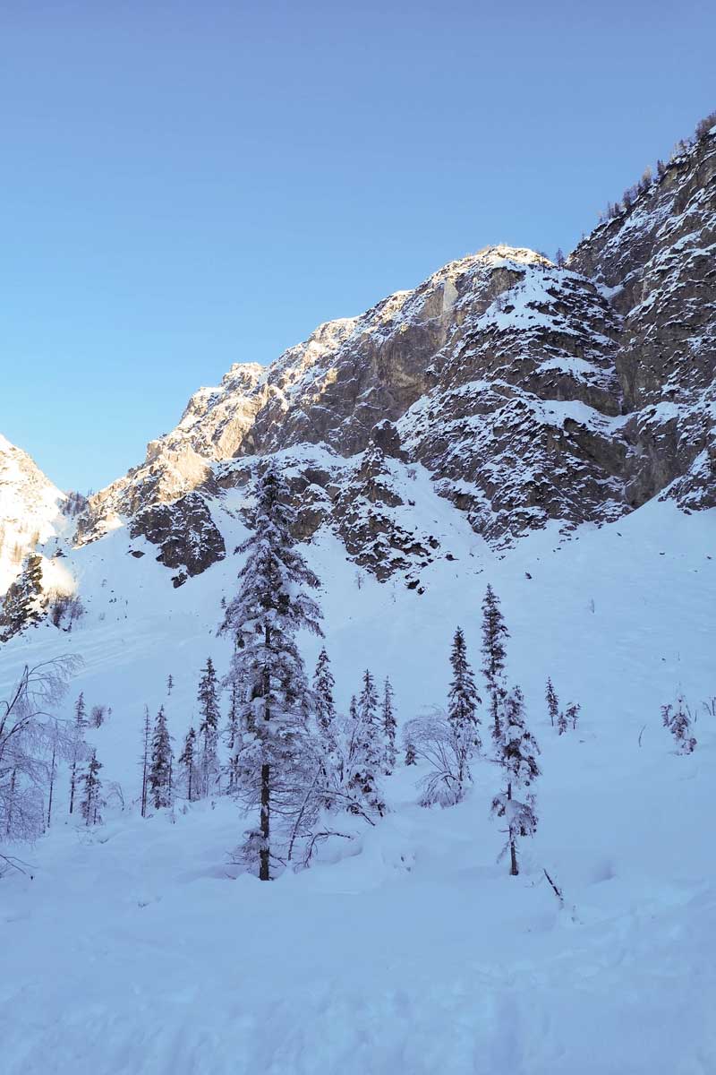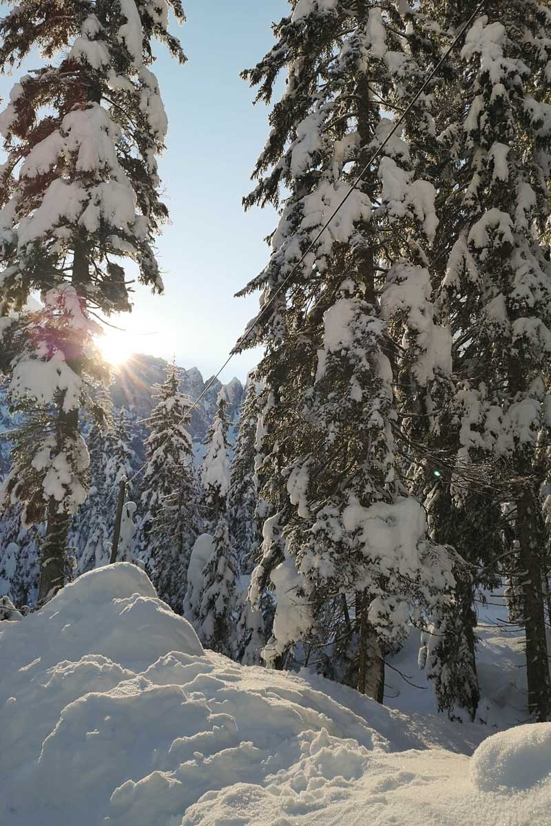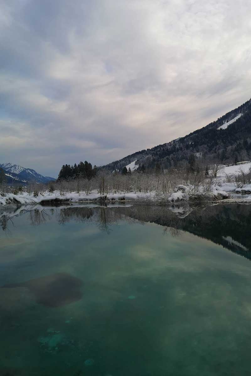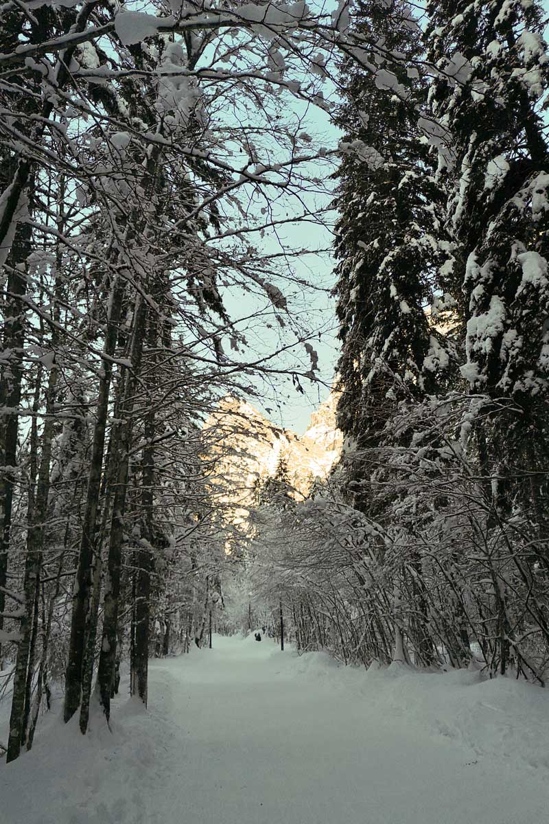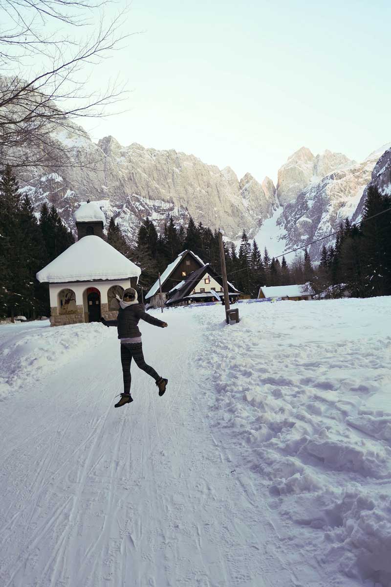 Izlet v Kranjsko goro pred prazničnimi decembrskimi dnevi je bila dobra odločitev. To, da sva se ognila prazničnim dnem, je pomenilo manj gneče na cesti, na pohodnih poteh in v gostilnah. Če se da, vedno izbereva manj priljubljene termine za obisk turističnih destinacij. Na zimske lokacije se tako podava pred božičnimi prazniki, januarja ali pa celo februarja. Izbereva tudi dneve med tednom, v kolikor pa na določeni destinaciji pričakujeva res veliko ljudi, se potrudiva, da sva tam pred vsemi ostalimi. Tudi to ima svoj čar. Zgodnja svetloba je lahko prav čarobna.