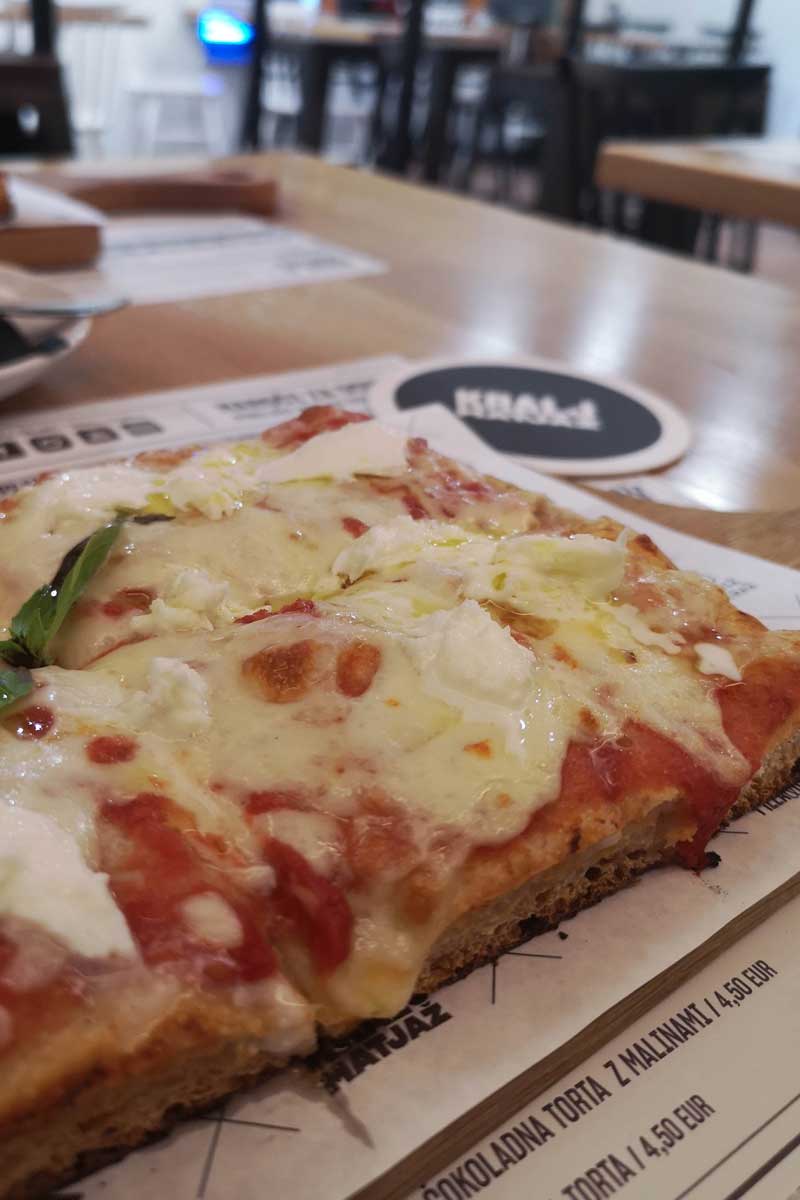 Tokrat sva se odločila za preverjeno klasiko. V Vopa pubu sva naročila goveji in vege burger. Oba okusna, pohvaliti moram predvsem domiselno vege različico. Pri Kralju Matjažu strežejo pizza pogače in to je dovolj velik razlog za preizkus. Noro dobro testo, izbrani nadevi in craft ponudba piva. Enostavno in dobro. Skoraj nič drugega ne potrebujeva.